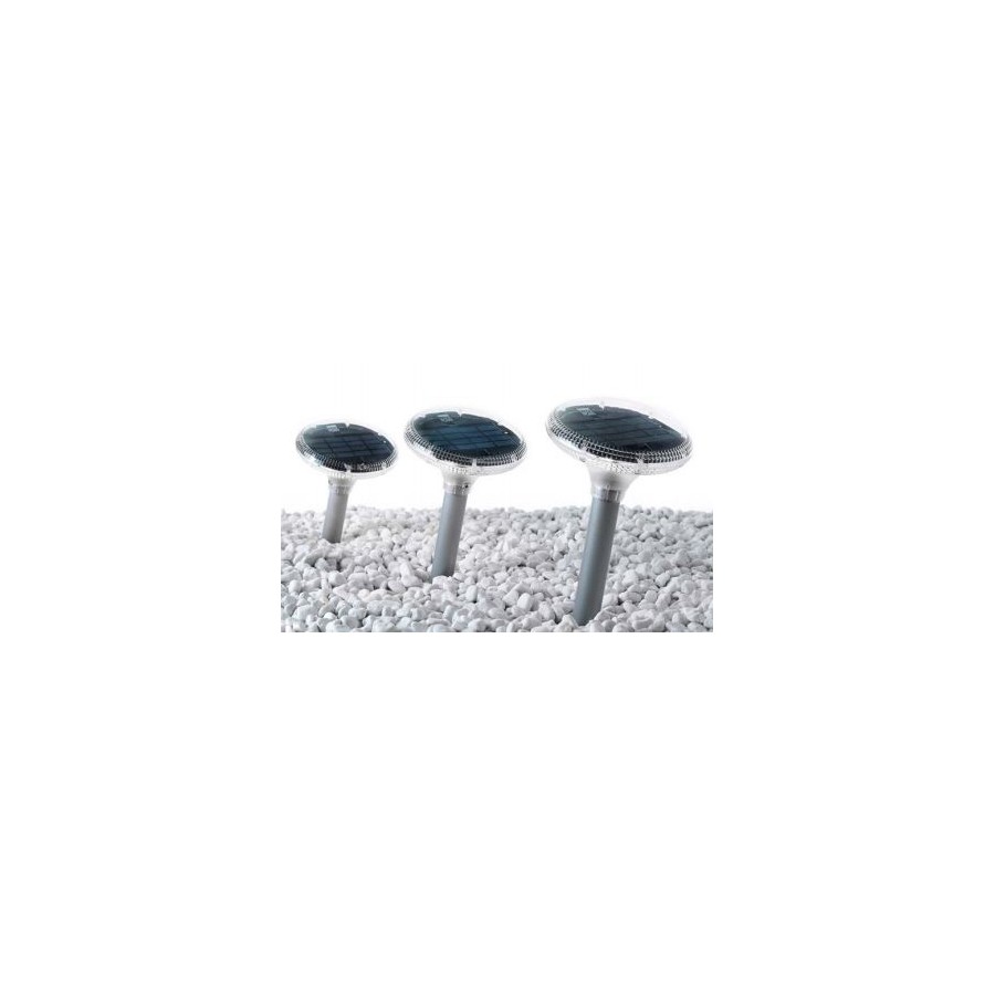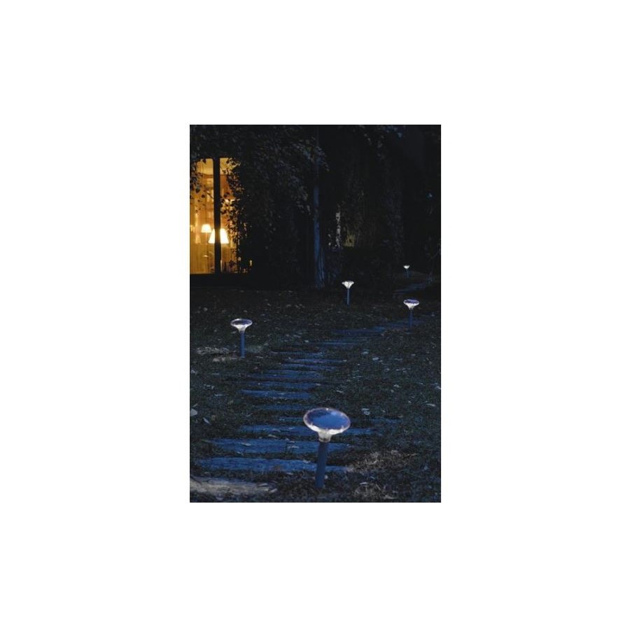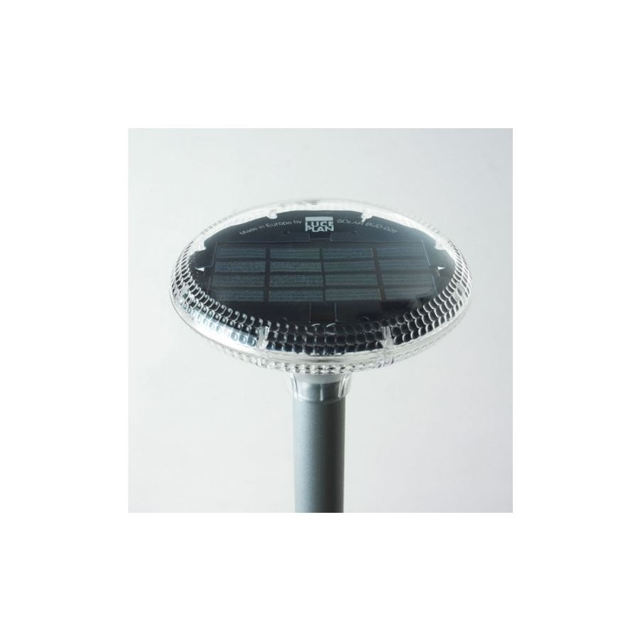 | Material | Vástago en aluminio anodizado natural. Cabezal de metacrilato transparente resistente a los rayos UV. Célula fotovoltaica de silicio policristalino. |