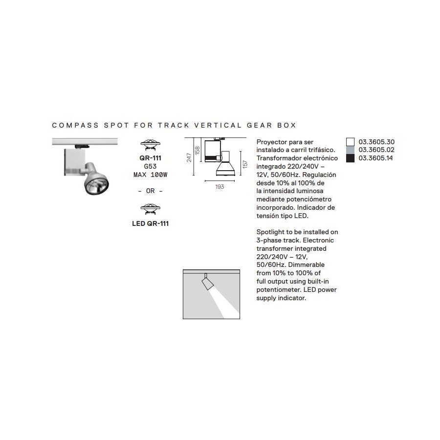 | Tipo de bombilla | Halo QR111 o LED G53 (No incluída) |