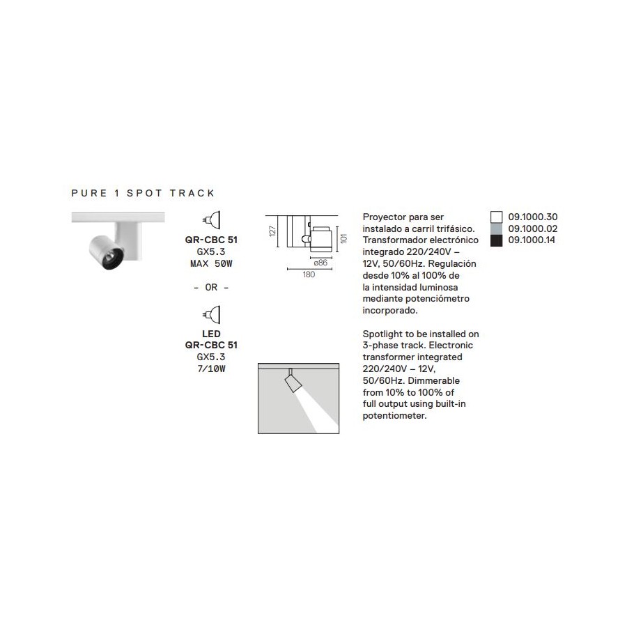 | Tipo de bombilla | GU5,3 (No incluída) |