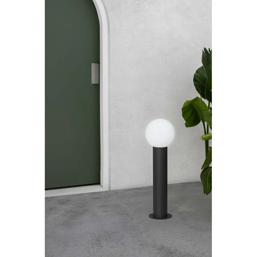 MOON es un sobremuro de estilo moderno para iluminación exterior, fabricado en aluminio y policarbonato opal. Esta es la versión de 61cm.